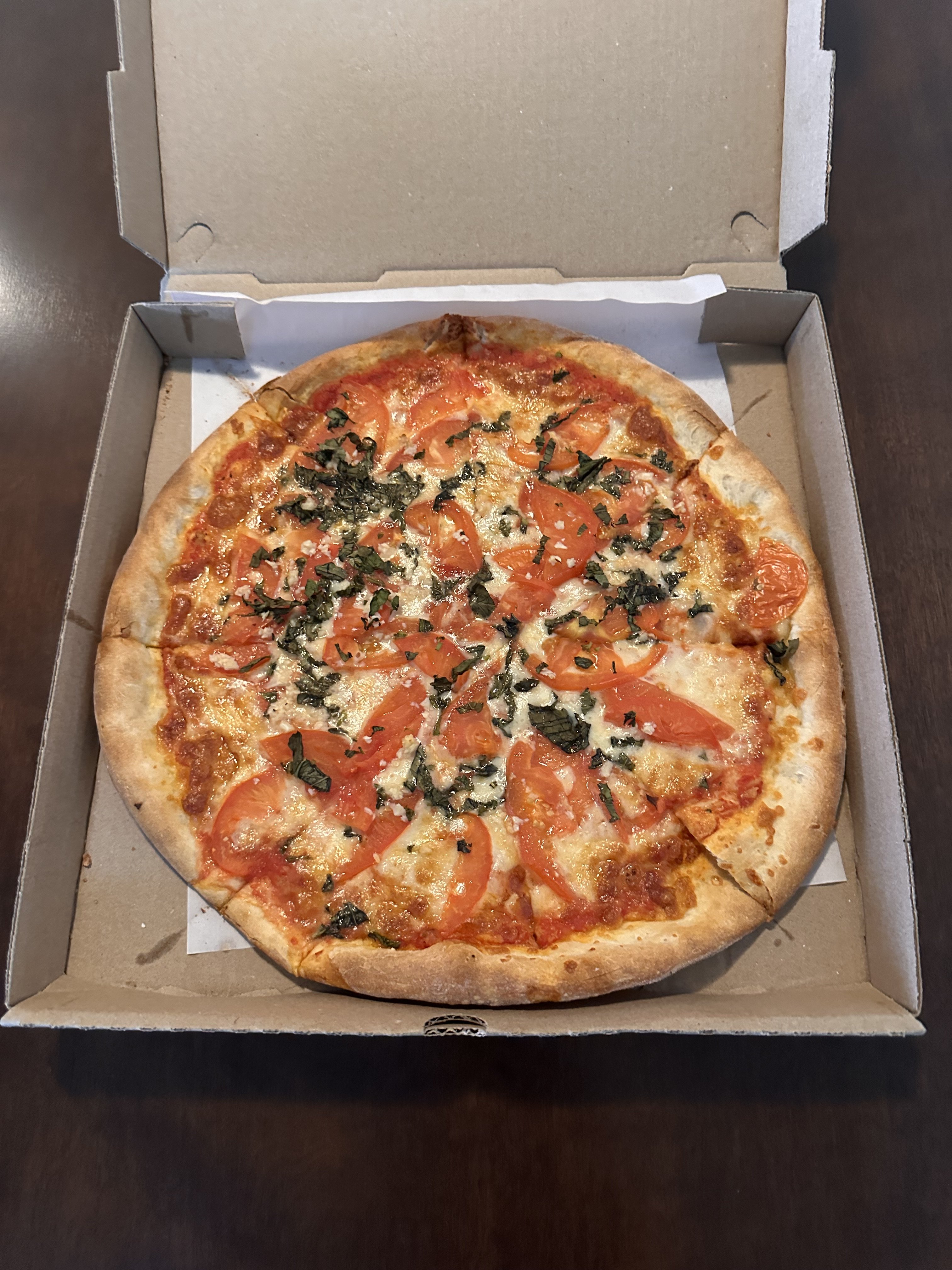 1 medium mozzarella, basil, garlic, and tomato pizza