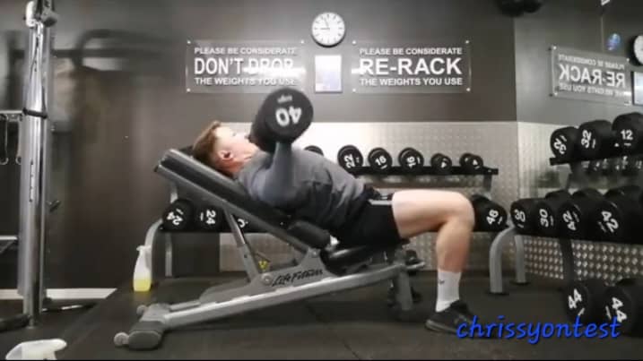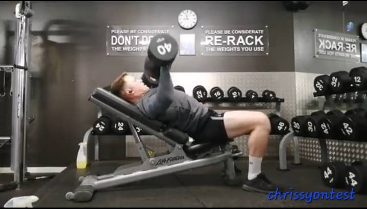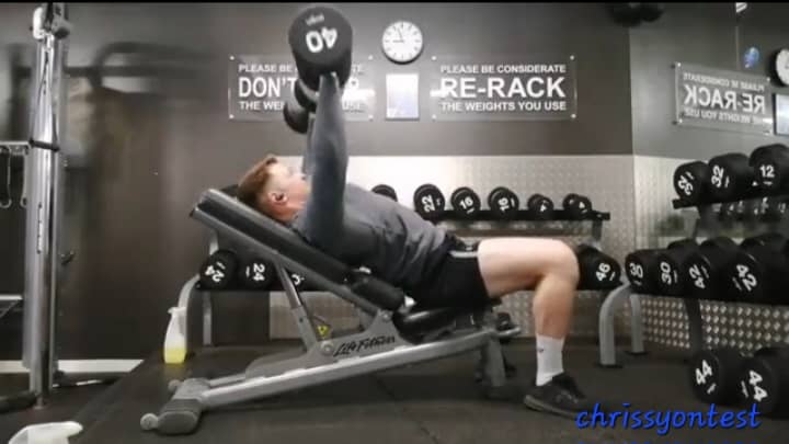 #6. Incline DB Press - 3x12, 12, 12 (R: 90 sec) - 88lb per hand