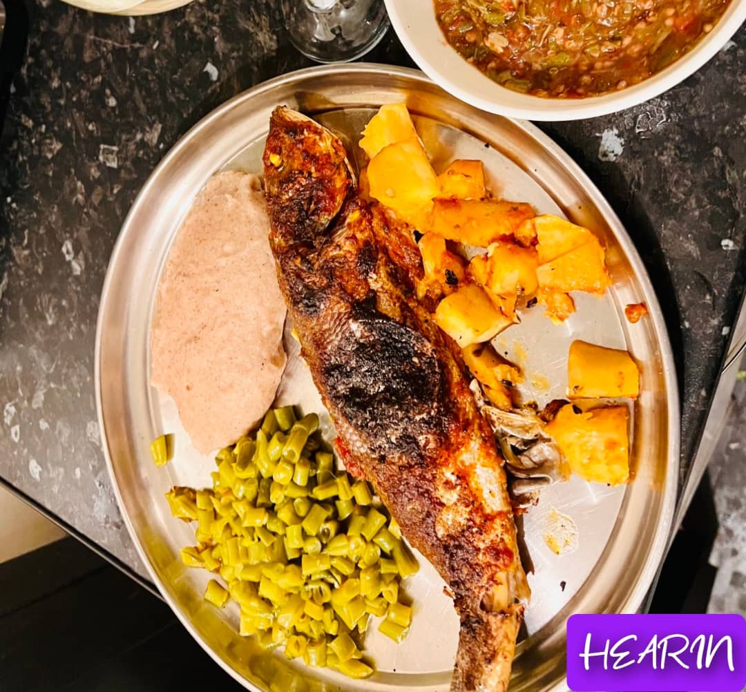 Lunch: grilled fish with a spinach salad and broccoli
