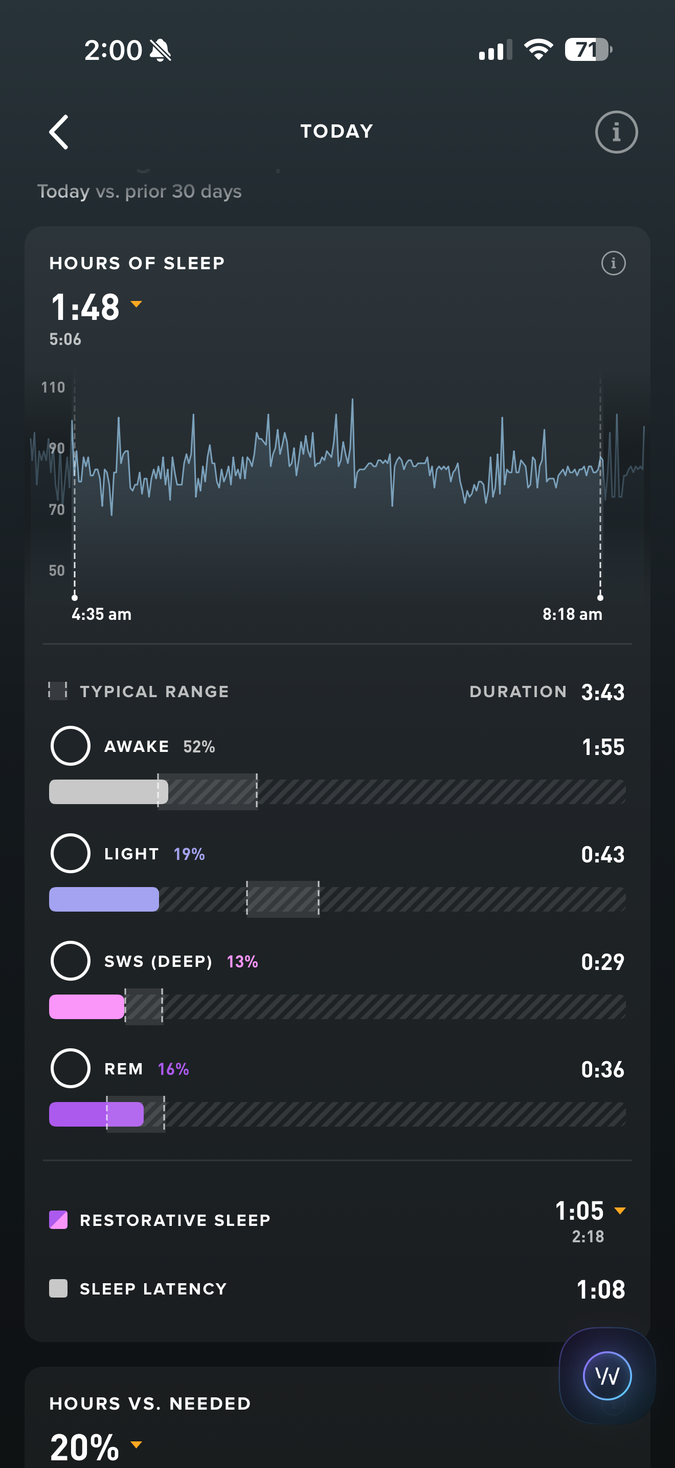 Back and neck seem fucked today, wasn’t able to sleep on my side last night due to the pain so I had to lay on my back and make sure my head didn’t move at all. Also in my workout today I went lightweight and higher reps for leg press and squats due to the lower back pain. Other then that sleep was really good, woke up feeling energised.