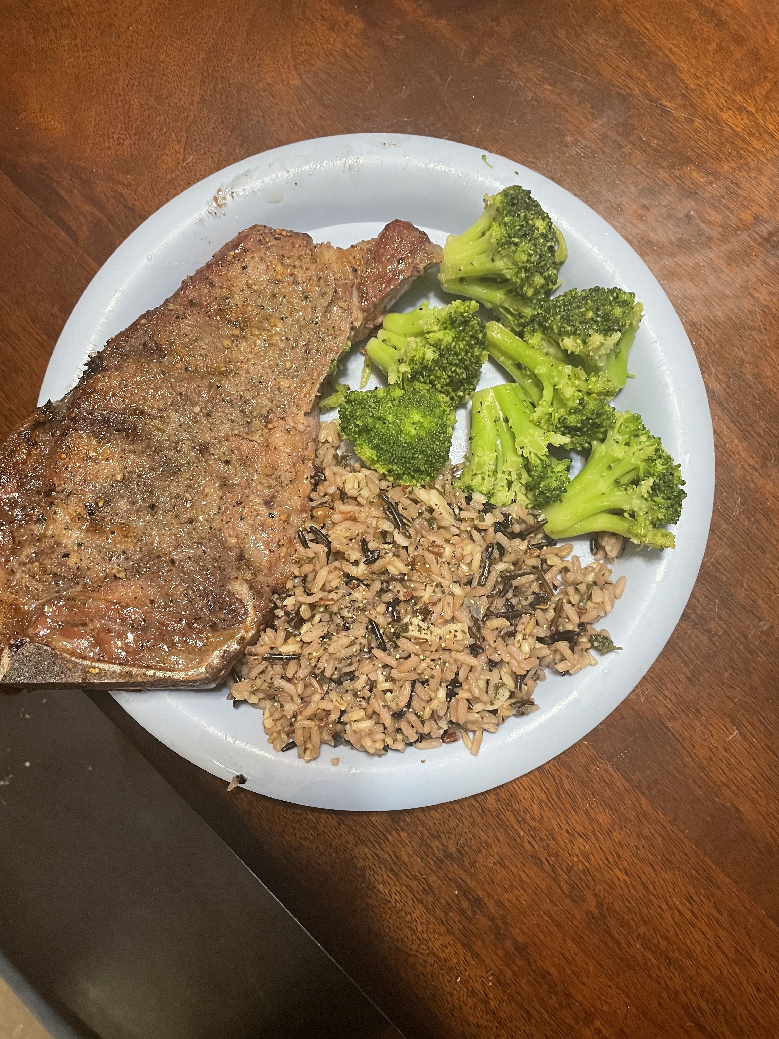 Here’s a breakfast, shake, snack in between meals and a dinner. I would’ve preferred brown rice or sweet potatoes but my wife does some of our cooking.