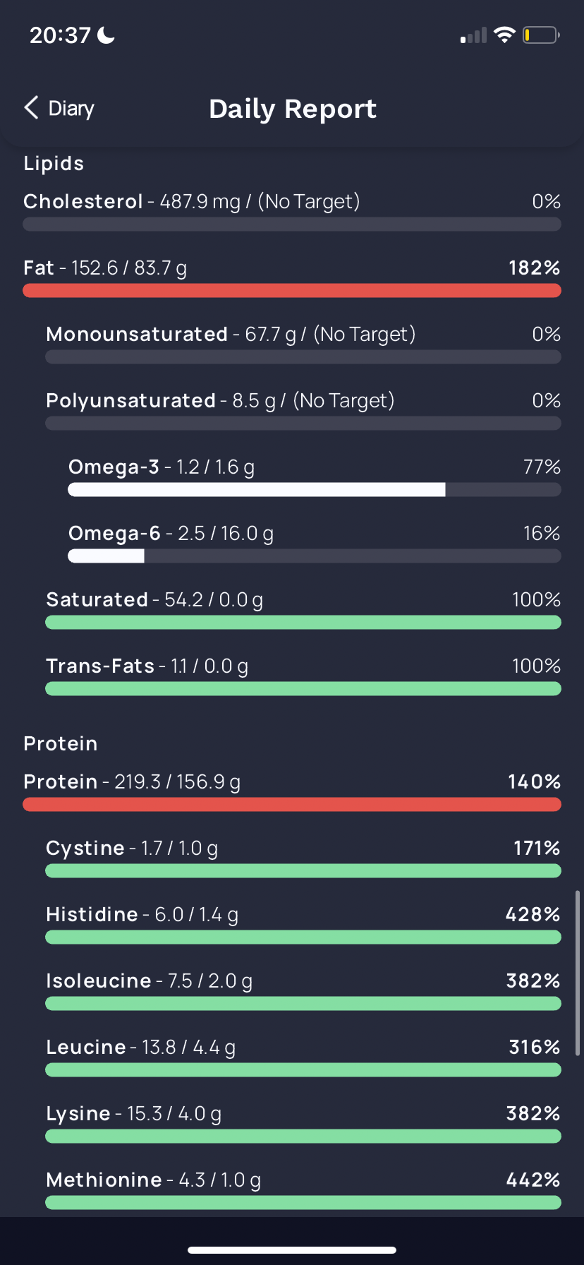 The day is basically over for me I’ve hit around 220ish protein and 160 fat. Should I drop to 180 tomorrow?